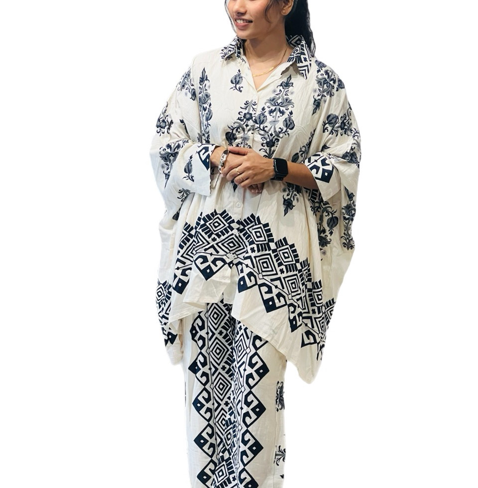 THIS OUTFIT IS A STYLISH FLORAL CO - ORD SET- TRENDY , COMFORTABLE, AND PERFECT FOR CASUAL WEAR .