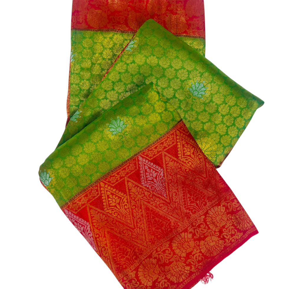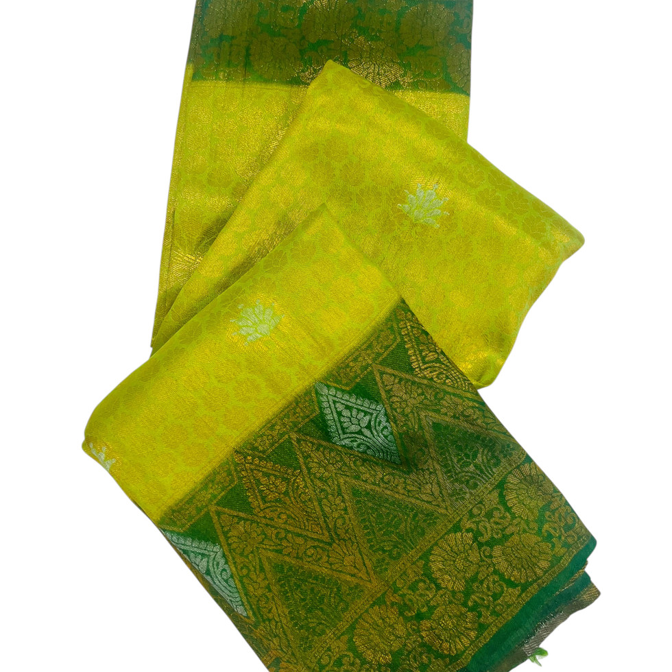 STUNNING SILK COTTON SAREE WITH INTRICATE GOLD PATTERNS AND TASSELS.THIS GOLD ACCENTS ADDING A TOUCH OF LUXURY AND SOPHISTICATION....
