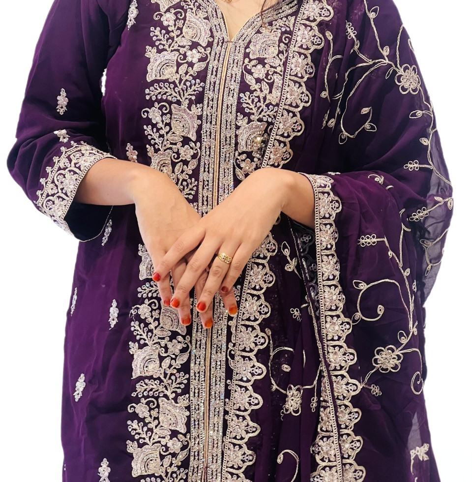 - DUPATTA : MATCHING SCARF WITH EMBROIDERY ALONG THE BORDER.