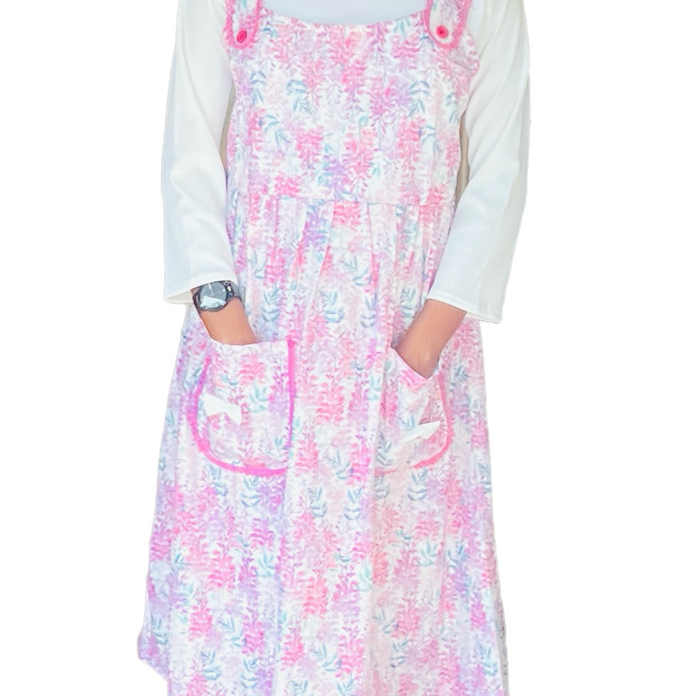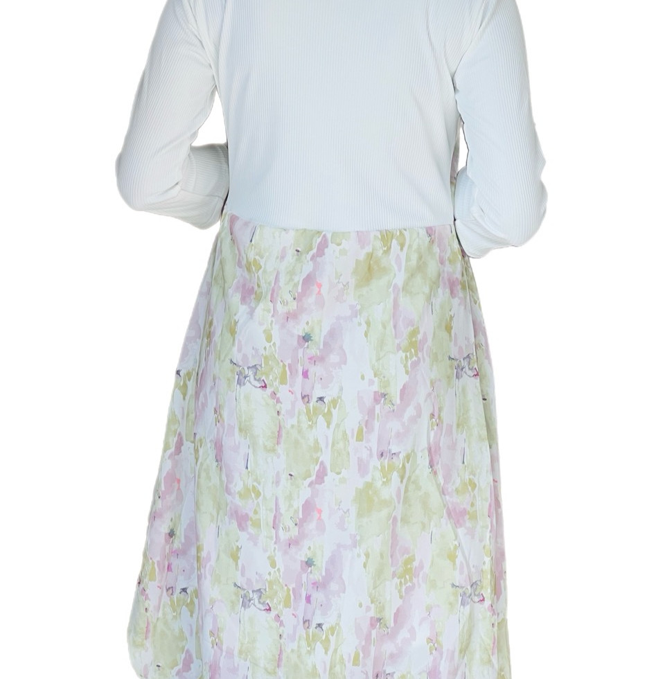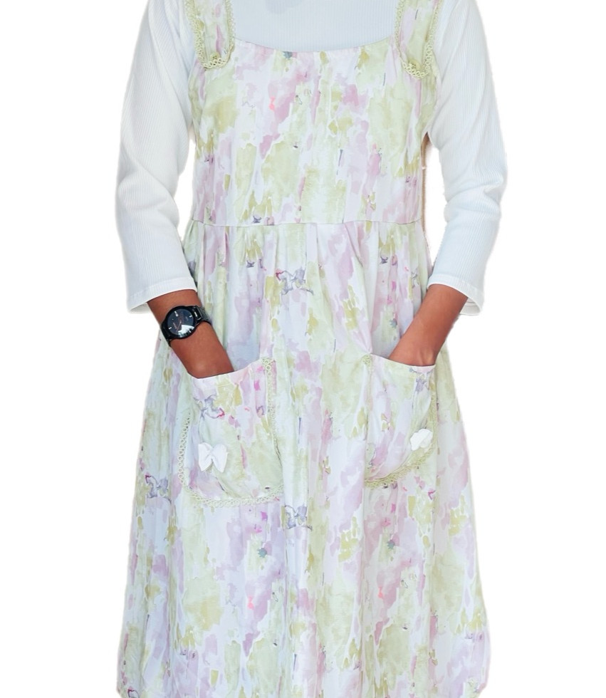 LAYERED LOOK: WORN OVER A PLAIN WHITE INNER TOP WITH 3/4 SLEEVES AND ROUND NECK.